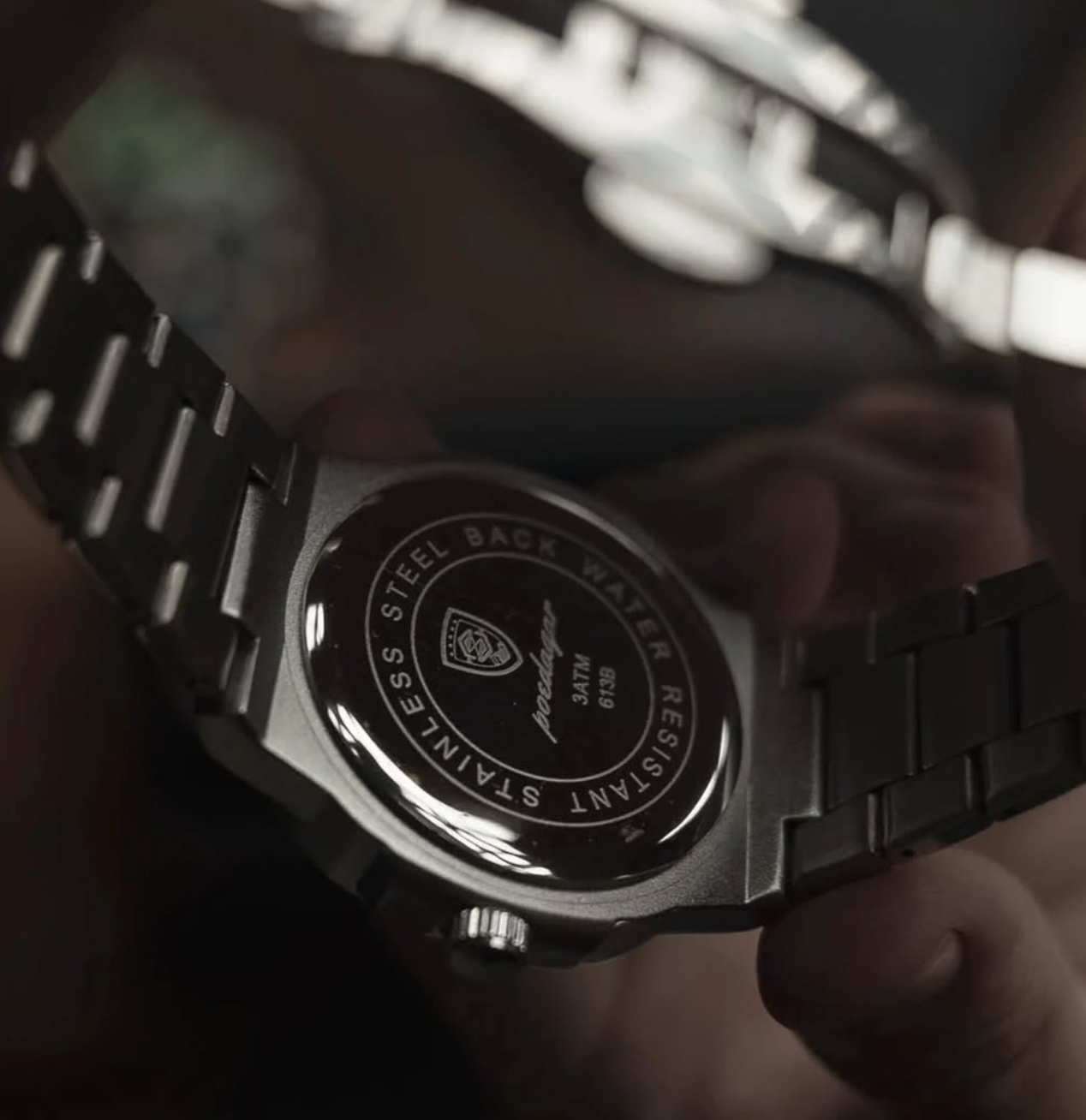 Nuestros relojes están elaborados con acero inoxidable 316L de calidad profesional, conocido por su resistencia excepcional, alta durabilidad y brillo duradero.